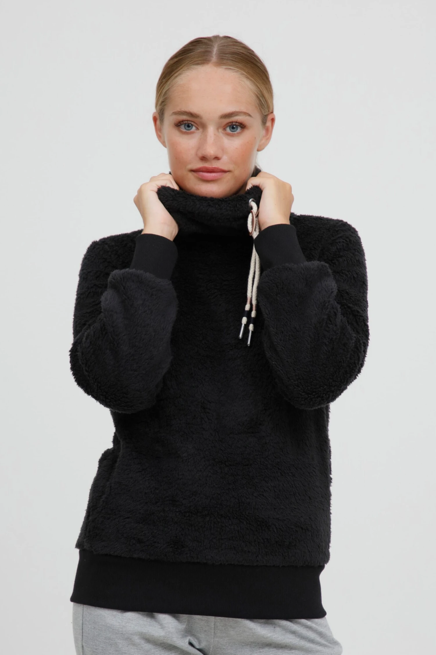 OXMO Pullover Fleecepullover ANNIKI Frauen Schwarz