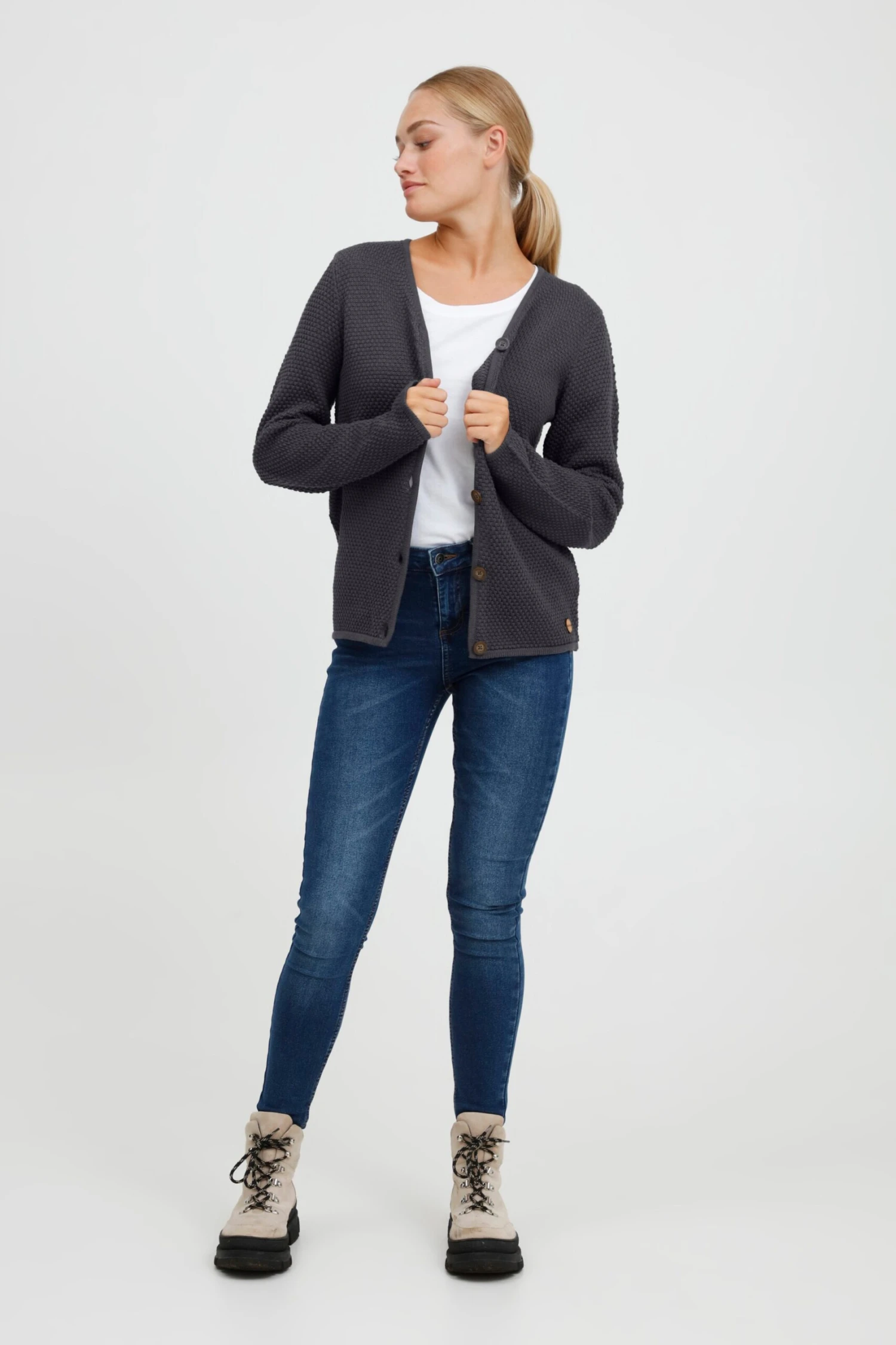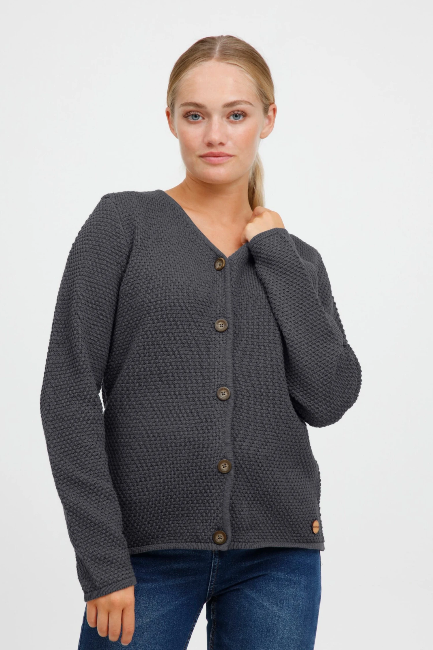 OXMO Strickjacken Strickjacke Helga Frauen Grau